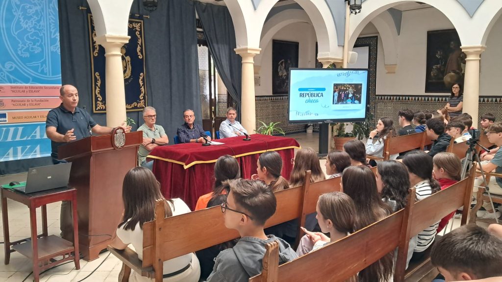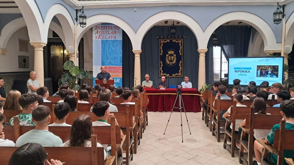 Después intervendrían el profesor D. Manuel Chacón Rodríguez y un grupo de alumnos y alumnas de 2º de Bachillerato, que participaron en 2025 en el intercambio con el Gymnázium -Hejčín de Olomouc de la República Checa y que relataron sus experiencias en esta movilidad, animando a sus compañeros /as a participar.