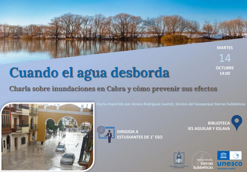 Con motivo del Día Internacional para la Reducción de los Desastres, el alumnado de 1º de ESO del IES Aguilar y Eslava ha participado en una interesante charla sobre las inundaciones en Cabra y cómo prevenir sus efectos, impartida por Amaia Rodríguez Juristi, técnica del Ayuntamiento de Cabra.