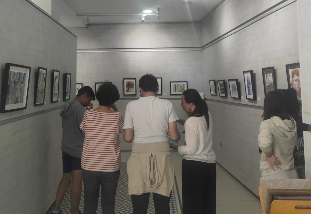 Posteriormente, los visitantes fueron acompañados a la exposición del Bachillerato de Artes, en la que se muestran trabajos de distintas disciplinas como dibujo, pintura y escultura, destacando el talento y la creatividad del alumnado.