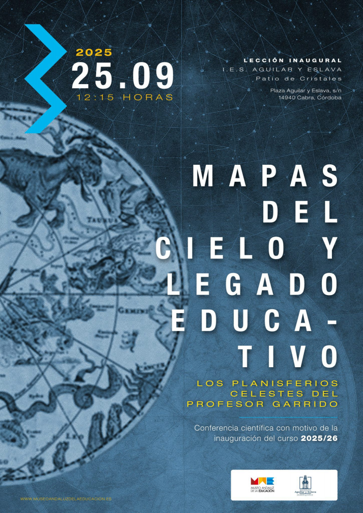 Durante el primer trimestre del curso 2025-2026, el IES Aguilar y Eslava de Cabra y el IES Luis de Góngora de Córdoba desarrollan un programa conjunto de actividades en torno a la figura del profesor Francisco Garrido Hidalgo (1843–1925), con motivo del centenario de su fallecimiento y de los aniversarios de la construcción de sus planisferios celestes ,130 años del de Cabra (1895) y 110 del de Córdoba (1905).