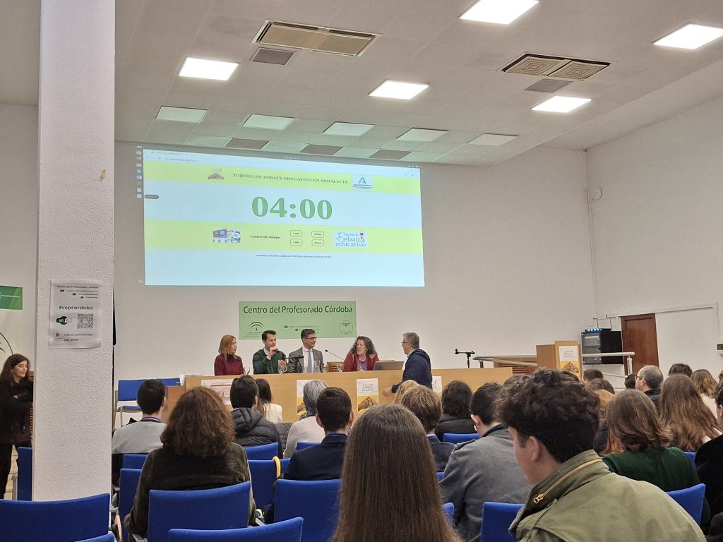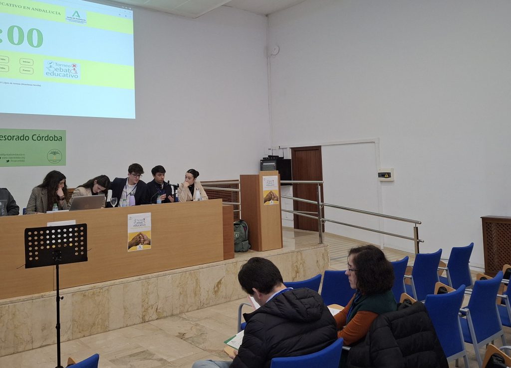 El martes, 18 de marzo tuvo lugar la fase provincial del torneo de debate plurilingüe de Andalucía en Córdoba. Nuestro centro participó por primera vez en la modalidad de inglés, con un equipo formado por alumnado de 1º bachillerato: Alejandra, Amalia, Rodrigo y Miguel Ángel. El tema elegido para debatir era las redes sociales: Is social media a threat for society?